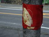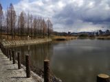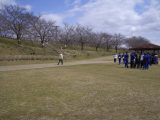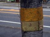 側道沿いの桜の木約200本に帯が巻き付けてありました。満開の桜のライトアップが楽しみです! 3/27 打上治水緑地公園