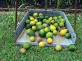台風の性か、今朝覗いたら一面に落果・・・ 数えたら90数個あった!
