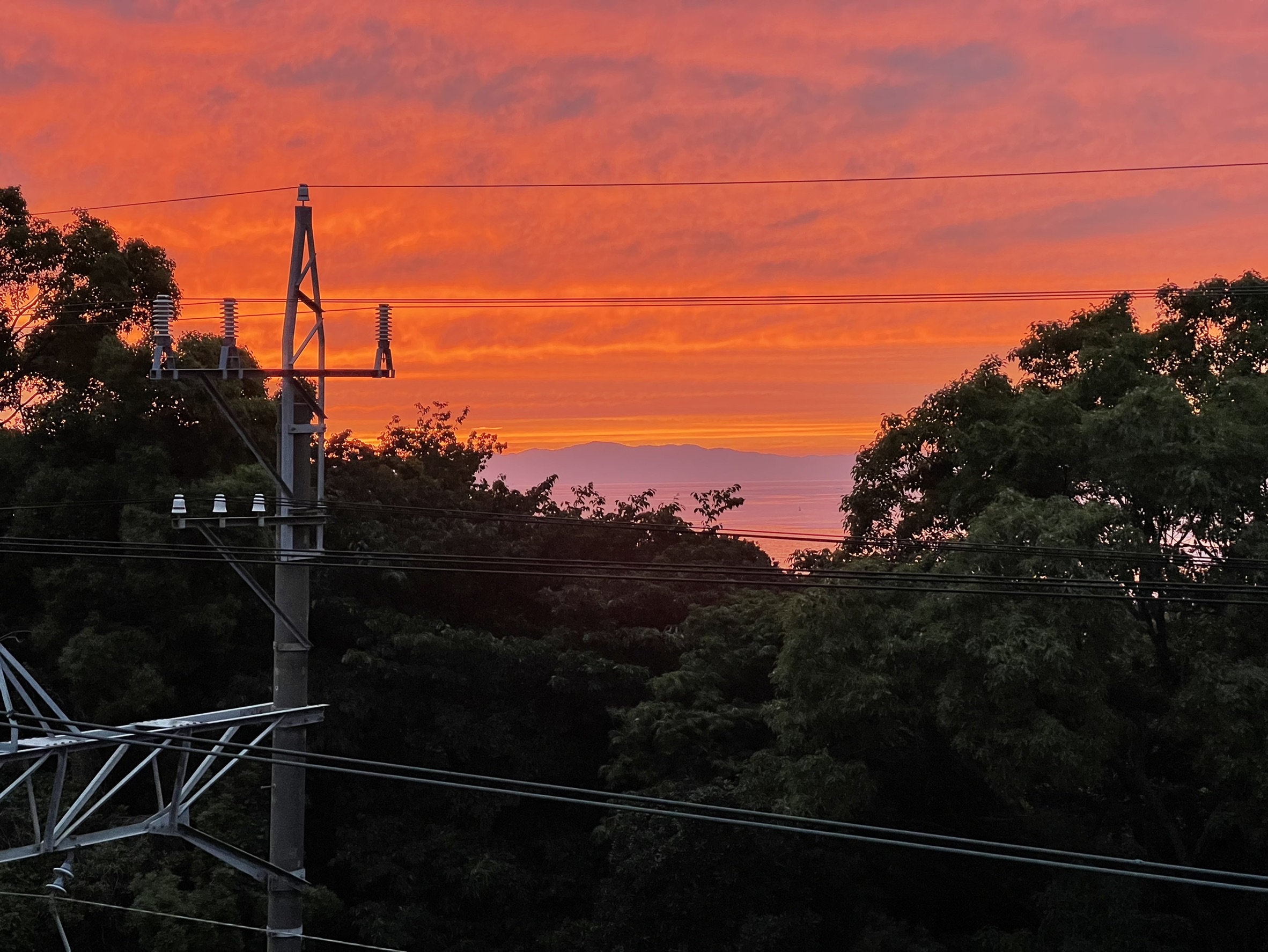 夕陽・・・                          阪南市に居る息子から送られて来ました。雨あがりの夕陽は綺麗ですが、この日の夕陽は、殊の外綺麗です!
