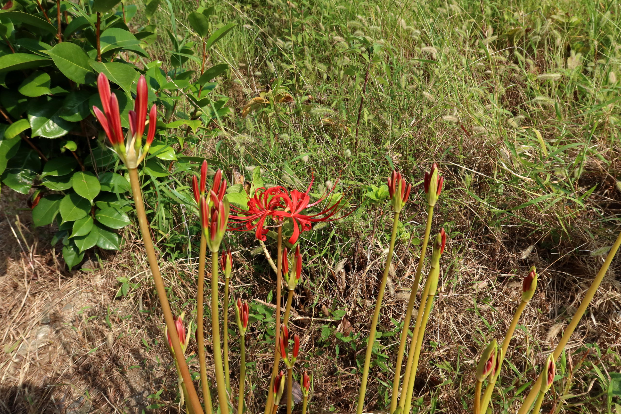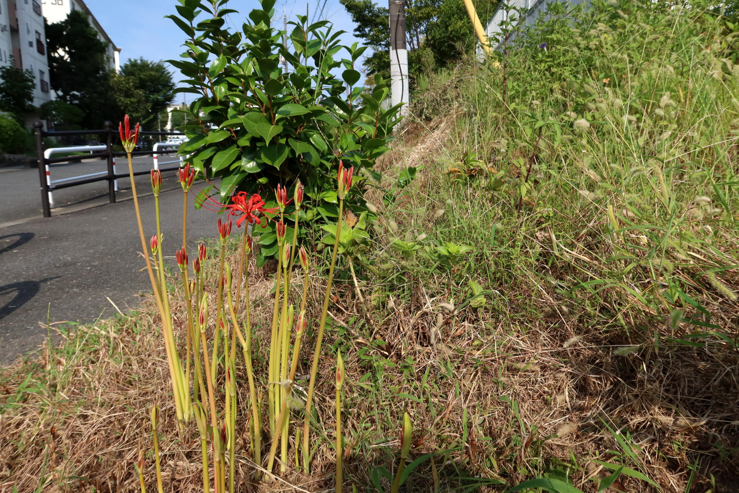 旧明徳小学校 南側東角の彼岸花・・・