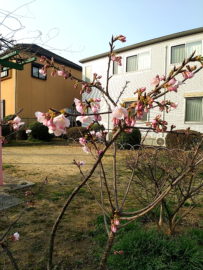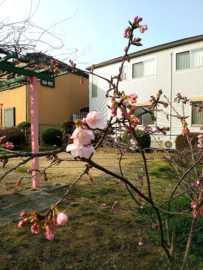 東が丘第一公園の桜・・・早咲きの桜のようです。