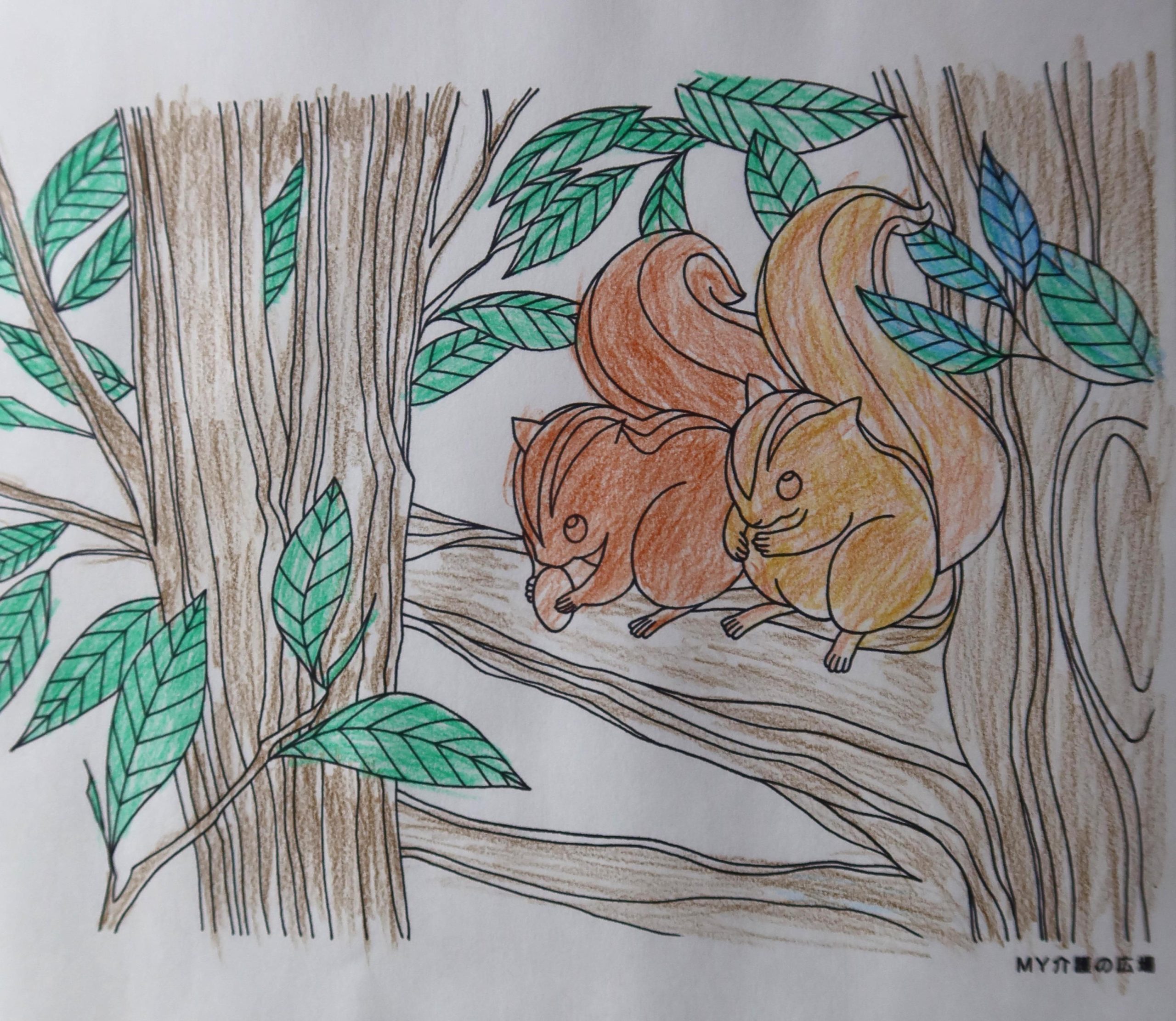 足の具合が悪く,出歩く事が出来ない時に,春日デイサービスセンターで塗り絵に出会いました。それ以来,塗り絵にハマってます。