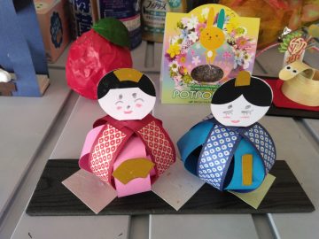 春日デイサービスて゜ひな祭りの工作をしました。孫達に,いいお土産がて゜きました。